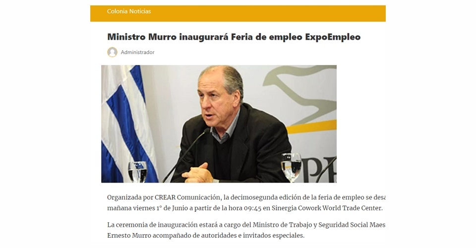 "Ministro Murro inaugurará Feria de Empleo ExpoEmpleo" - Para visualizar la noticia completa, click aquí